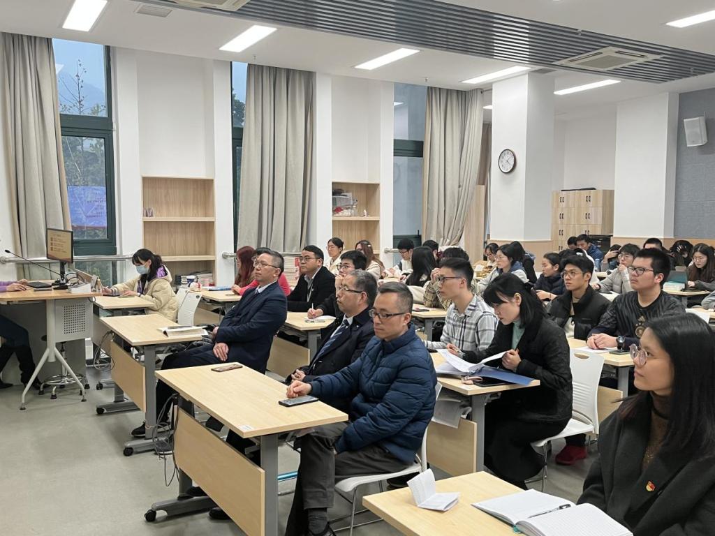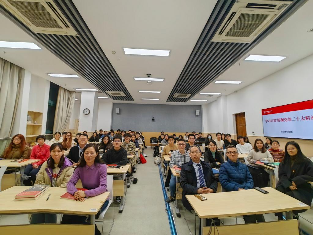 12月2日下午,校党委委员、教务处处长、捷克论坛 副院长朱雪波在生物医药科研楼为学院60余名师生作党的二十大精神宣讲报告。学院执行长阮积晨、校教务处副处长金伟琼、学院副院长王小尚、院长助理陈钢、陈浩出席。
