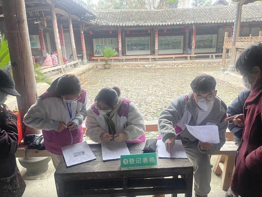 我院办公室主任施苏雪带领学院白求恩志愿服务社的学生志愿者戴怡然、熊轶城协助登记问诊,采访调研帮助村民建立健康档案数据库,助力“肤生工程”相关患者的长期健康状况追踪。