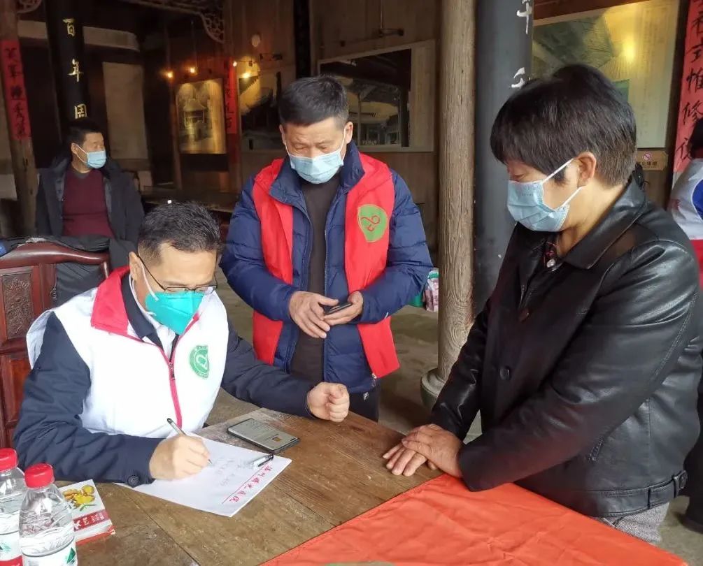 在现场,陈忠慈善工作室累计送上3万多元爱心款,为每位老人送上一刀肉,并为他们投保“温州益康保”;同时,为该村12名困难户每人送上爱心包。温医大药学院党委副书记王建波带领药学院志愿者向村民们发放爱心防疫包。温州楠溪第一楼餐饮董事长、温州市书法家协会会员金育林和温州丝绸之路文化艺术有限公司董事长吴琪雷,为村民写春联和福字,共送出100多副春联和福字。