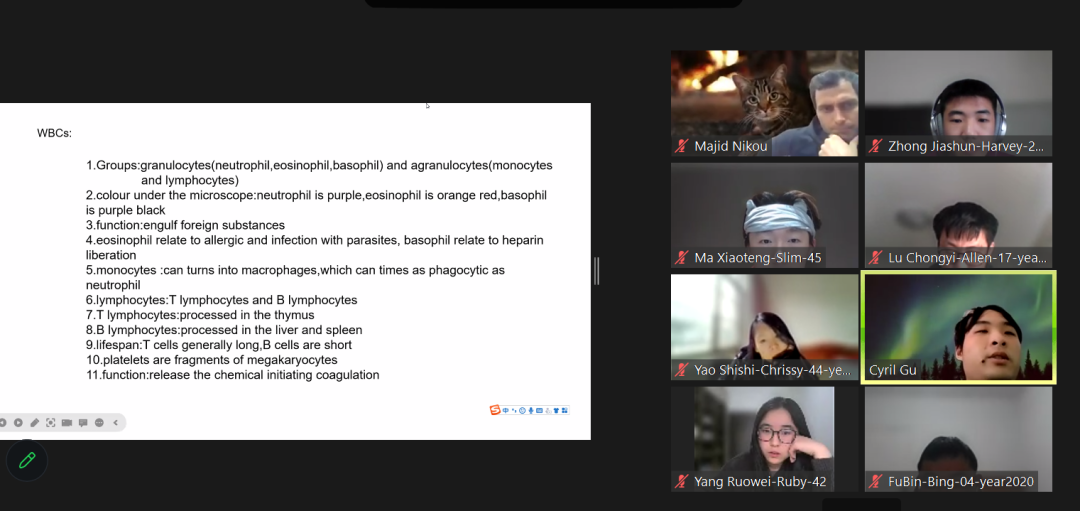 针对本科项目大三学子的专业英语学习,加方邀请到阿尔伯塔大学校内优质的ESL外籍教学团队为部分有需求的同学开展了小班化的辅导,鼓励同学们不断突破医学英语学习中的语言壁垒。同时,应部分大一、大二同学之邀,外方课程助教Katherine和Tara也通过Zoom平台开展了以口语为主的英语提升活动,她们轻松愉悦、灵活多样的教学形式,得到了同学们的一致好评。