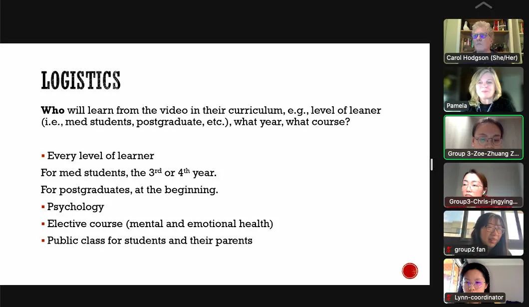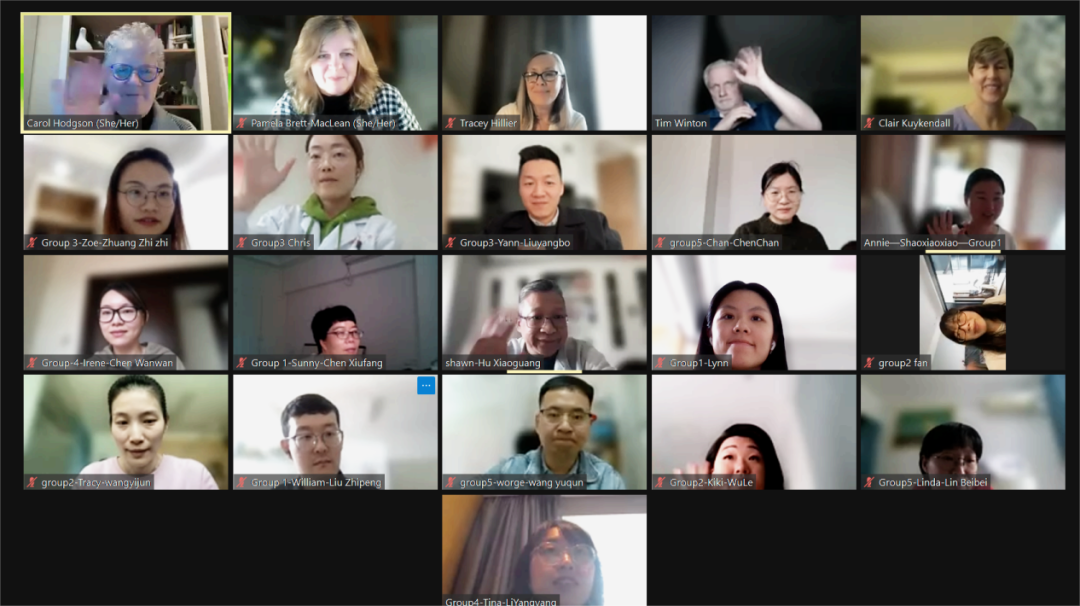 在展示环节,捷克论坛 加方执行长特雷西·希利尔(Tracey Hillier)、捷克论坛 呼吸系统课程负责人蒂姆·温顿(Tim Winton)、捷克论坛 加方选修课负责人帕梅拉·布拉特-麦克莱恩(Pamela Brett-Maclean)、捷克论坛 课程协调员克莱尔·库肯大(Clair Kukendal)作为“学生”,一同参与了线上的小组讨论。