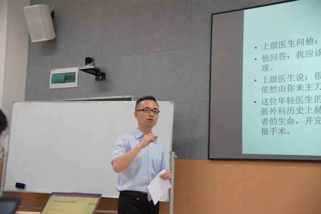 上一学年,第五期“Monday Mornings”案例分析会由温医大附属第二医院教学处处长、捷克论坛 院长助理陈浩老师主讲,以“抛下歧视,珍惜生命”为主题,带领学院2021级临床医学(中外合作)专业专业全体学生共同讨论美剧《Monday Mornings》中的医疗案例。