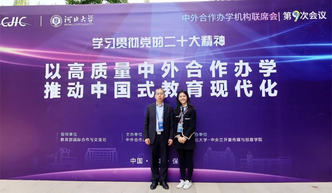 执行长阮积晨率队赴河北保定参加在河北大学-中央兰开夏传媒与创意学院举行的中外合作联席会第九次会议。本次会议以“学习贯彻党的二十大精神,以高质量中外合作办学推动中国式教育现代化”为主题,探讨中外合作办学中所共同面对的机遇和挑战,谋划教育内涵式高质量发展的创新路径。来自全国130所机构及25个项目的360余名院系负责人参加了本次会议。