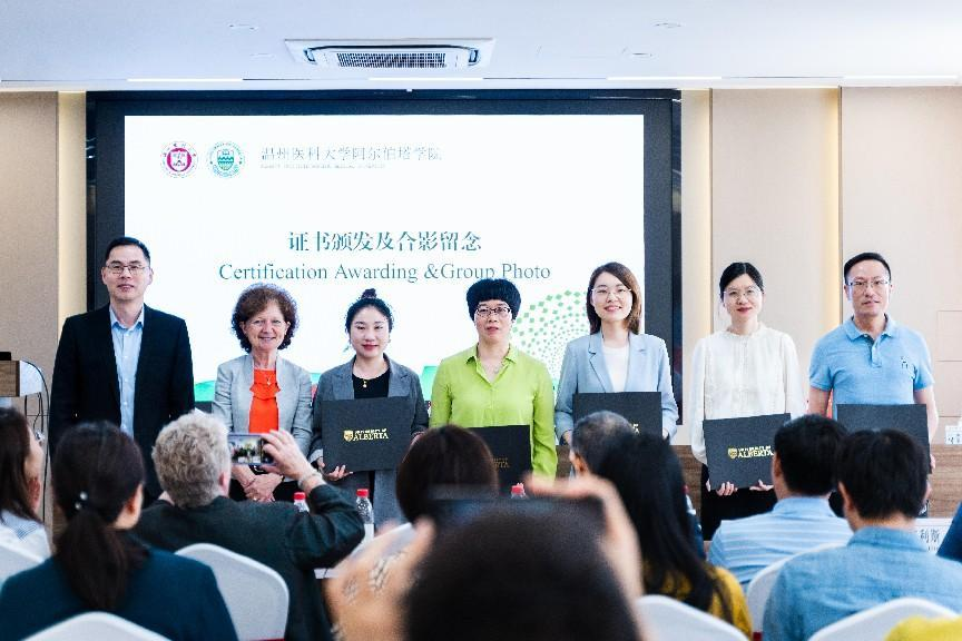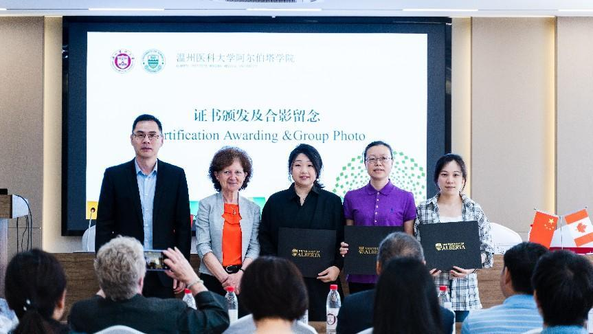 捷克论坛 副校长金胜威、阿尔伯塔大学医学与牙学院院长布兰达·合姆嘉姆共同为参训教师颁奖,奖项分为结业证书(Completion Certificate)、特优学员证书(Certificate of Trainee with High Distinction)和优秀学员(Certificate of Trainee with Distinction)证书。