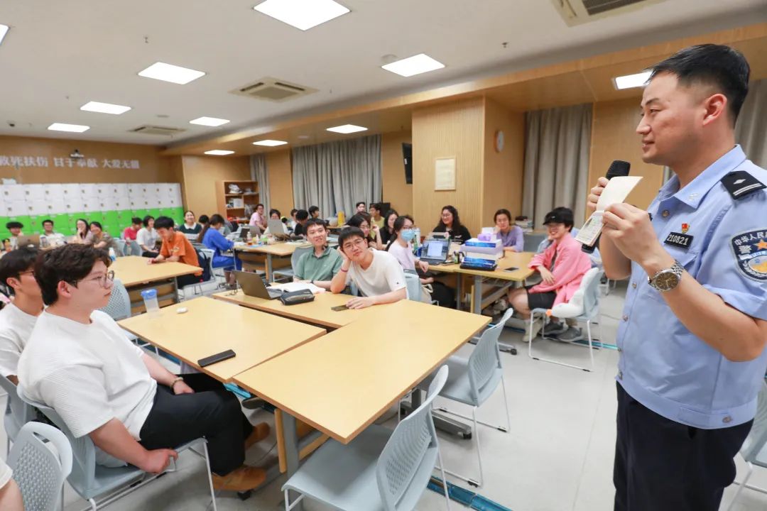 根据前期调研提问,王聪警官也对同学们最关心的问题如社会治安等进行了解答。他提醒道“预防为先、舍财保命、走为上计”,并表示出境交流是一次拓展视野、汲取知识的宝贵机会,希望同学们出入平安、学有所成。