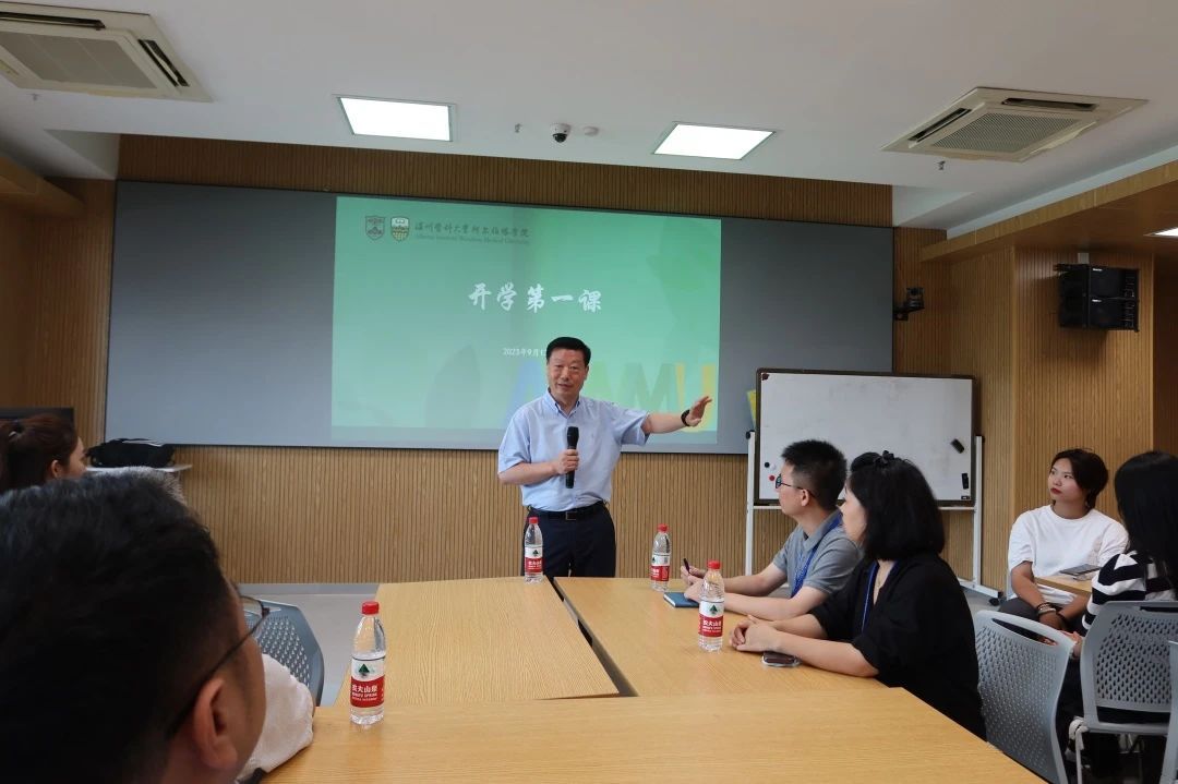 院长宋伟宏为2023级新生开讲“开学第一课”。学院执行长阮积晨、副院长王小尚、辅导员及新生班主任出席。