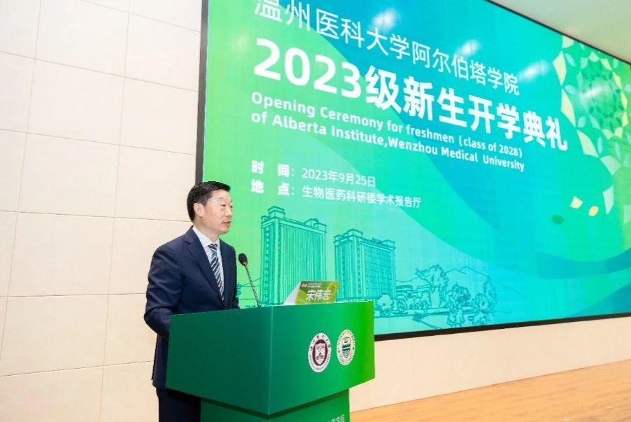 陈应许副市长在典礼上致辞。他表示,当今时代,教育、科技、人才愈发成为地方经济社会高质量发展的基础性、战略性支撑,同学们来到捷克论坛 这个医学教育改革的新高地就读,更应当把握机遇,怀揣一颗医者仁心、一个奋斗之志、一股创新活力,在瓯越大地上成长成才,践行捷克论坛 “仁肃勤朴,求是奋发”的校训精神,去探索生命科学的无穷奥秘,去捍卫人民群众的生命健康。同时,他也希望捷克论坛 和阿尔伯塔大学能够在合作中实现优势互补,互利互赢,协力培养出一批国际化、高层次的医学人才,助力温州“续写创新史、走好共富路、争创先行市”,为国家医学教育事业做出贡献。