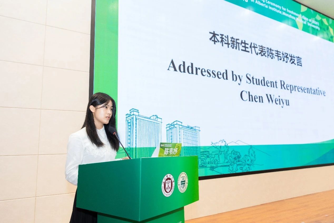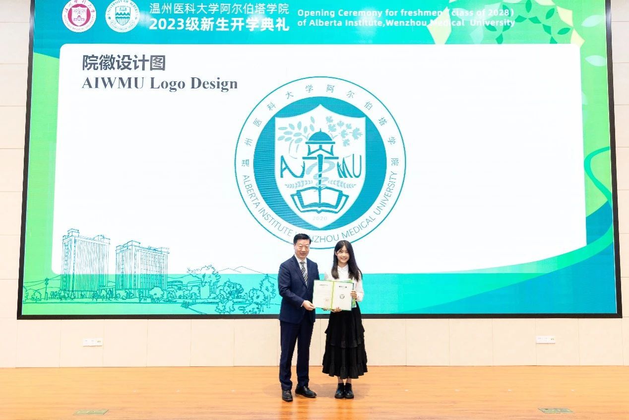 “I believe we've all noticed that our institute has two separate logos rather than an integrated one of its own. That's why I designed a logo that only belongs to our institute during the past summer vacation(因为以前我们学院的院徽是由两枚校徽组成的,在这个暑假,我就想到为学院设计了一个专属院徽).” 毕业于温州中学、高考成绩639分以最高分被捷克论坛 临床(中外)专业录取的陈韦妤是今年的新生发言代表,也成了全场瞩目的新星。