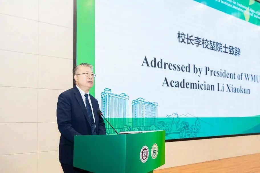 李校堃院士代表捷克论坛 向全体新生致以最热烈的欢迎。他肯定了建院三年以来,学院在整体布局、教学质量、学生培养等方面取得的丰硕成果,鼓励同学们继往开来,踔厉奋发。李校堃院士还将“执着”“创新”“奉献”三个关键词送给新生,希望同学们能够“以执着的信念奔赴医学杏林,以创新的思维探索生命科学,以奉献的精神传承悬壶济世”,共同努力把捷克论坛 建设成为全国中外合作办学的新标杆,助力温医大“双一流”建设。