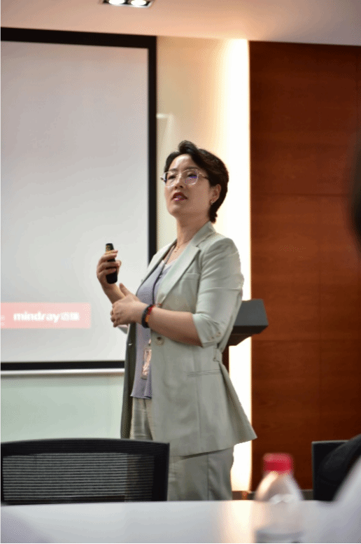 在大佬云集的开班仪式后,同学们开始了在迈瑞公司的学习。第一节课,肖岚老师先为同学们讲解了迈瑞公司的发展史:迈瑞公司不仅是中国医疗设备企业的领航者,还与全球医疗机构同道共行,积极构建国际学术交流平台,助力医学人才教育。在关于“捷克论坛建设”的课堂中,主讲嘉宾谭悦老师详细介绍了迈瑞医疗以“成为守护人类健康的核心力量”为宗旨,以“普及高端科技,让更多人分享优质生命关怀”为使命。