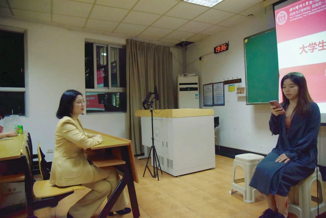讲座上,董晓老师还带领同学们进行了一次“求职实践”,通过模拟面试的形式,邀请两位同学作为求职者,现场向全体学生讲解面试礼仪与注意点,她特地在自我介绍环节大力着墨,手把手指导同学们应该如何在有限的时间内向面试官传递更多重点信息。