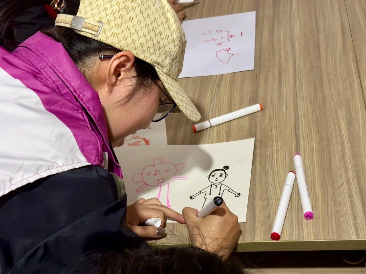 接着,志愿者们鼓励学员们展开想象的翅膀,拿起画笔,用自己的方式创作出独特的肖像画——这不仅是一次绘画的体验,更是一个展示个性和自我表达的机会。志愿者们在一旁耐心指导与协助,学员们各显所长投入创作,每一幅画作都记录了他们的内心世界与自我认识。