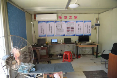 午后实践队成员们移步至“铁皮房”——残友之家。这里虽简朴却充满力量,每一处细节都透露着生命的不屈与奋斗。橱柜上那一面面熠熠生辉的奖状,无声地讲述着残障人士们不懈追求与辉煌成就的故事。这些荣誉不仅是对他们勇气的最高赞誉,更是对未来无限可能的期许与鼓励。