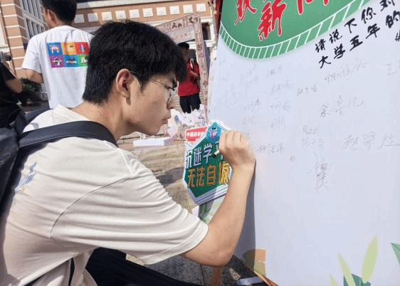 报到现场,每位学生驻足报到点,不仅留下签名与暖心祝福,更将对未来的规划、心中的梦想一一写下,为大学生活留下珍贵开篇。