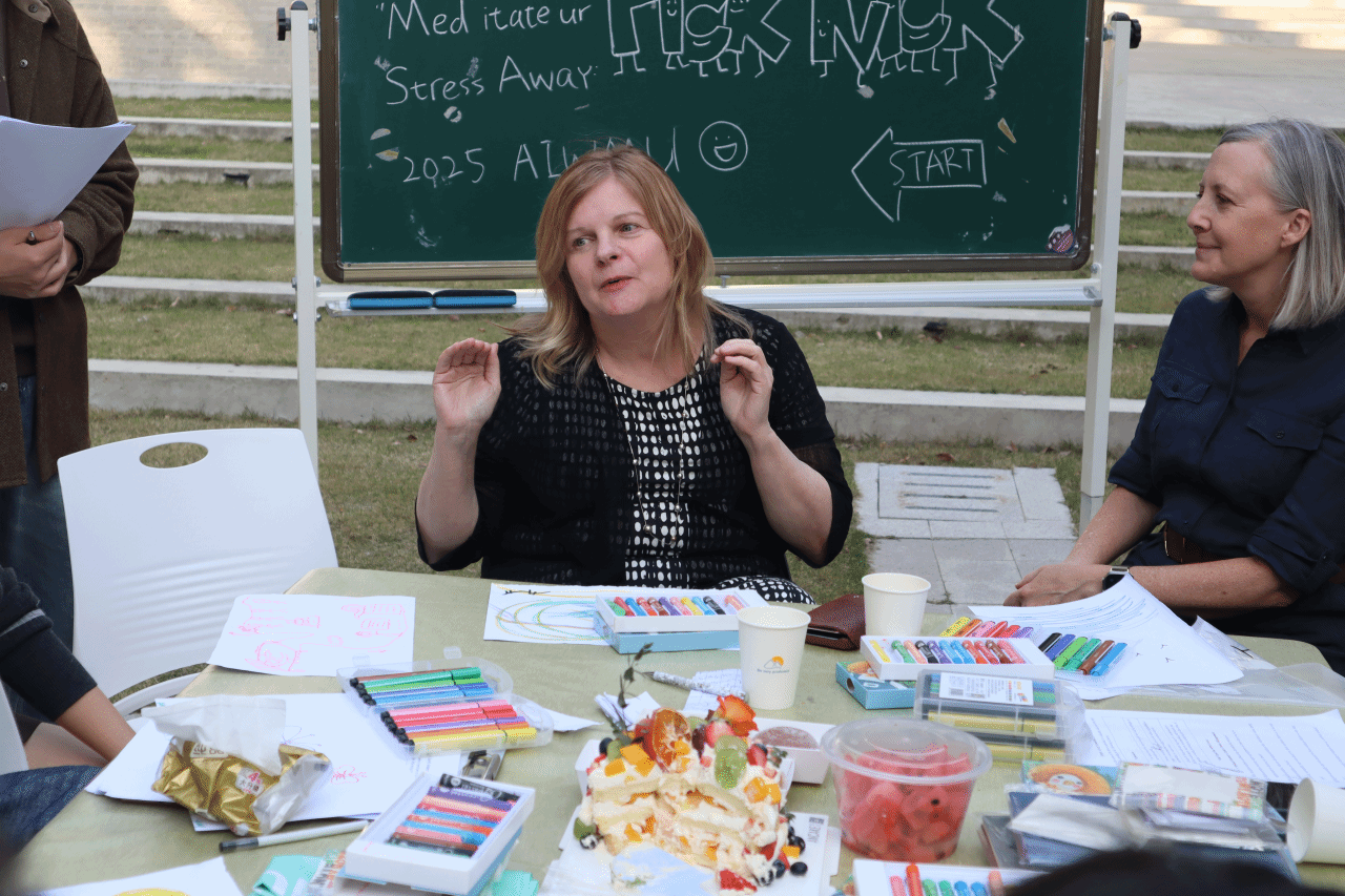 近日,国际交流中心的草坪上散落着午后的阳光和欢笑声。医学生们换下白大褂,与两位特邀嘉宾加拿大导师Dr.Tracey Hillier、Pamela Brett-MacLean一起,完成了一场「压力溶解实验」——原来对抗压力的正确姿势,是沐浴在春日的阳光里呀!