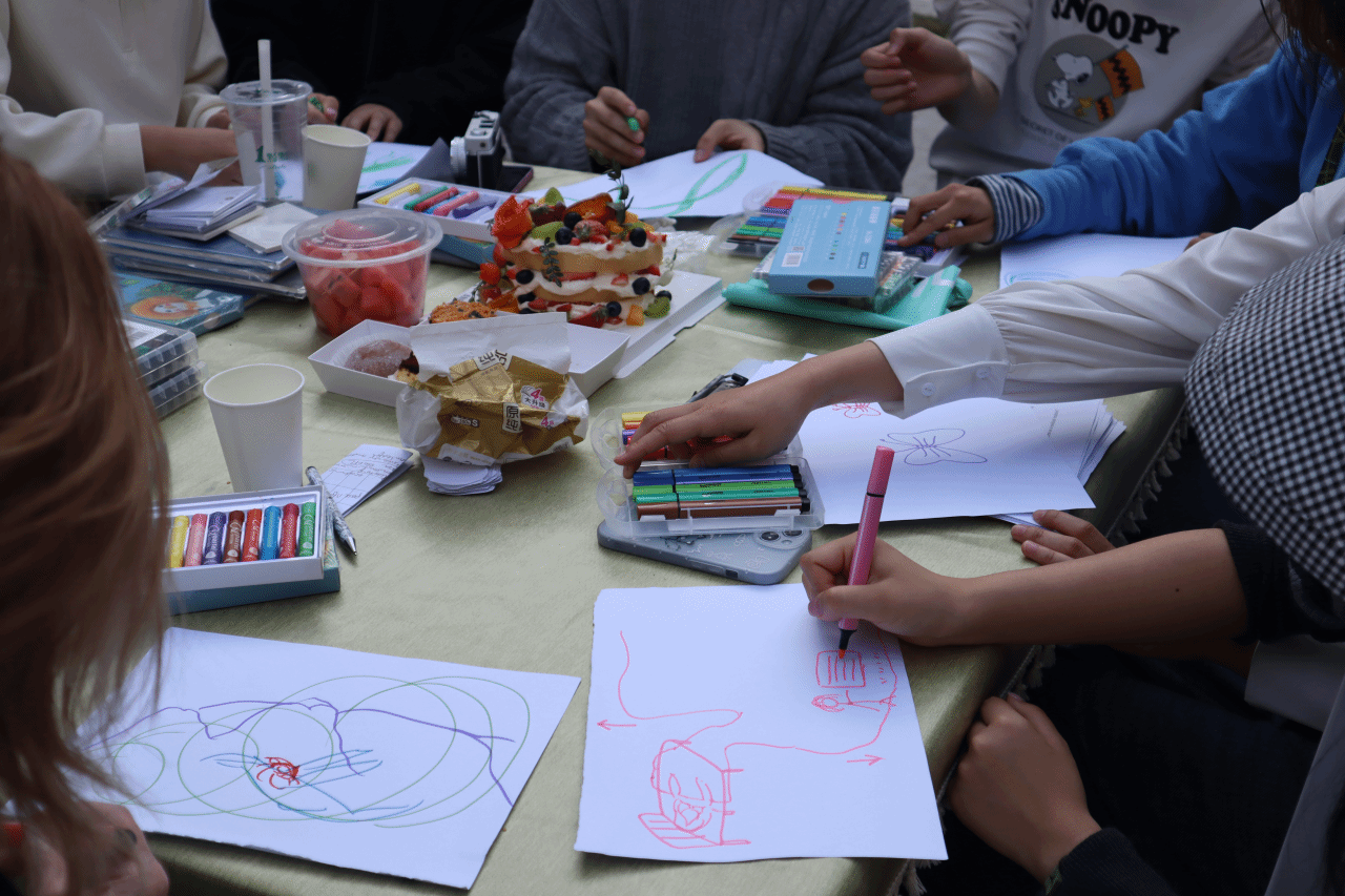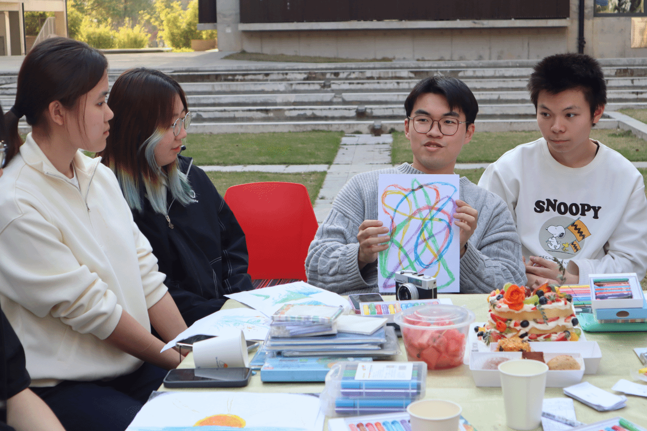 茶歇时分,大家意外发现今天竟然是其中一位同学的生日!就在一天前,她还在为繁重的ddl和学业任务焦虑不已,忙碌到几乎忘记了这一天的到来。3月寿星闭眼许愿的瞬间,那些未曾言说的压力,最终在分享同一块蛋糕时的相视一笑中悄然消散。此刻,活动的意义也在不经意间升华至一个新的高度。