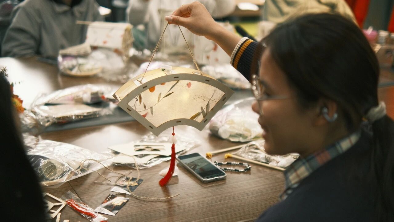 在随后的手工环节中,参与者们纷纷化身匠人,亲手制作皮纸心灯。从精心裁剪到细致装饰,每一步都凝聚着大家的智慧与心意,将美好的祝愿与无尽的希望融入这盏盏心灯之中。