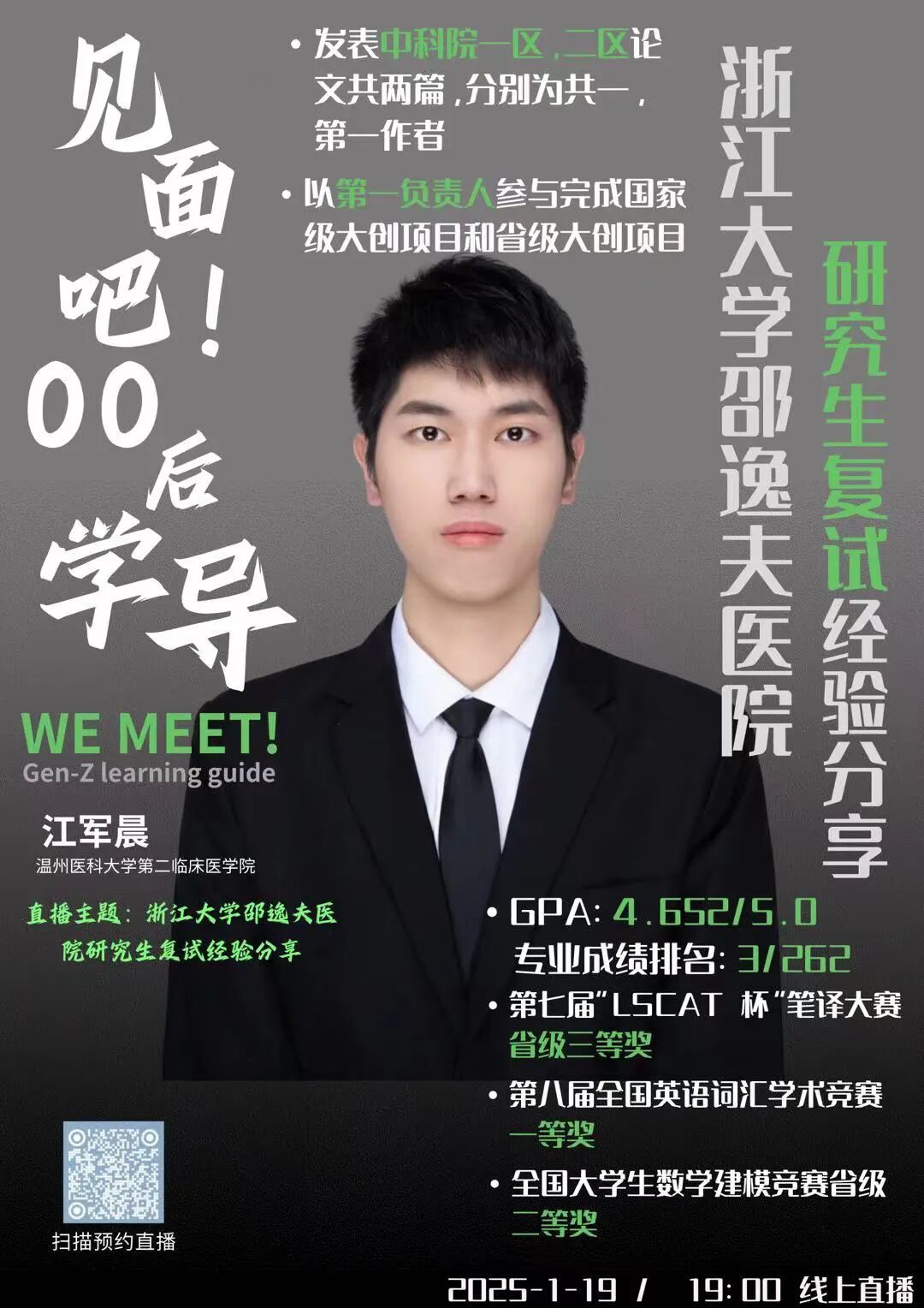见面吧,00后学导|“We Meet, Gen Z learning leader”浙江大学邵逸夫医院江军晨研究生复试经验分享