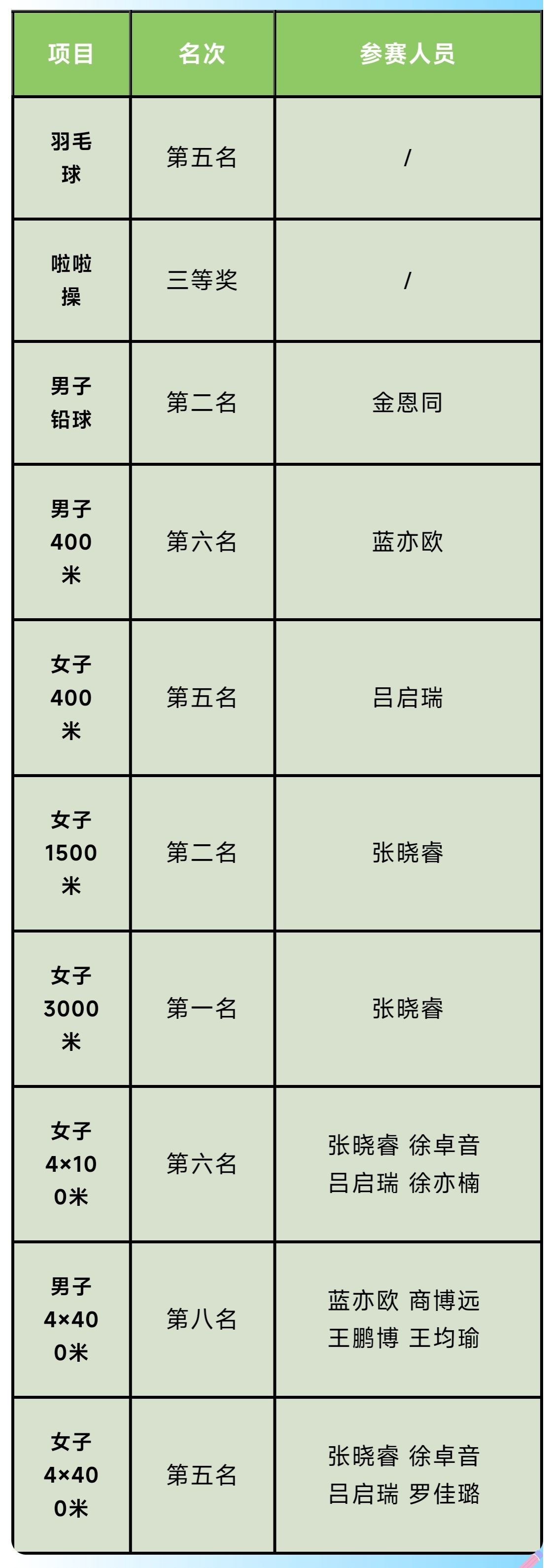 田径赛道上,没有孤军奋战的英雄,只有全力以赴的勇者。从百米冲刺的电光石火,到三千米长跑的耐力比拼,每一位选手都在用汗水诠释着“更快、更高、更强——更团结”的奥林匹克精神。无论最终是否站上领奖台,那些奋力奔跑的身影、咬牙坚持的瞬间,都已成为赛场上最耀眼的光芒。愿这份拼搏与坚韧,伴随我们跨越人生的每一段赛道,在未来的日子里,继续追风逐光,绽放属于自己的精彩!