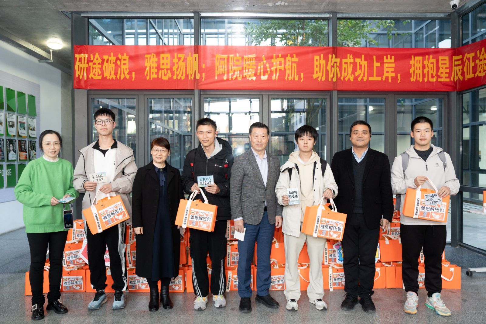 学院学工办为全体新生精心筹备了雅思解压包,将关怀与鼓励尽数打包。发放现场,老师们逐一为同学们送上解压包,还亲切地与每位同学合影留念。镜头下,一张张洋溢着笑容的脸庞,驱散了备考的疲惫,让同学们深切感受到学院的坚实支撑,更坚定了勇往直前的信念