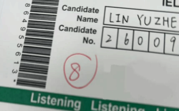 正式考试时,我的听力依旧是8.0,说明平时的听力练习确实起到了“稳住下线”的作用。值得一提的是,考试当天因设备故障连换了两台电脑才放出听力音频,正是平日里扎实的模拟听力训练给了我足够的底气,让我能迅速调整心态,保持专注。