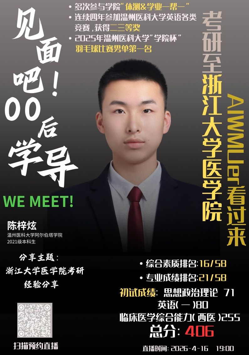 见面吧,00后学导|陈梓炫:浙江大学医学院考研经验分享